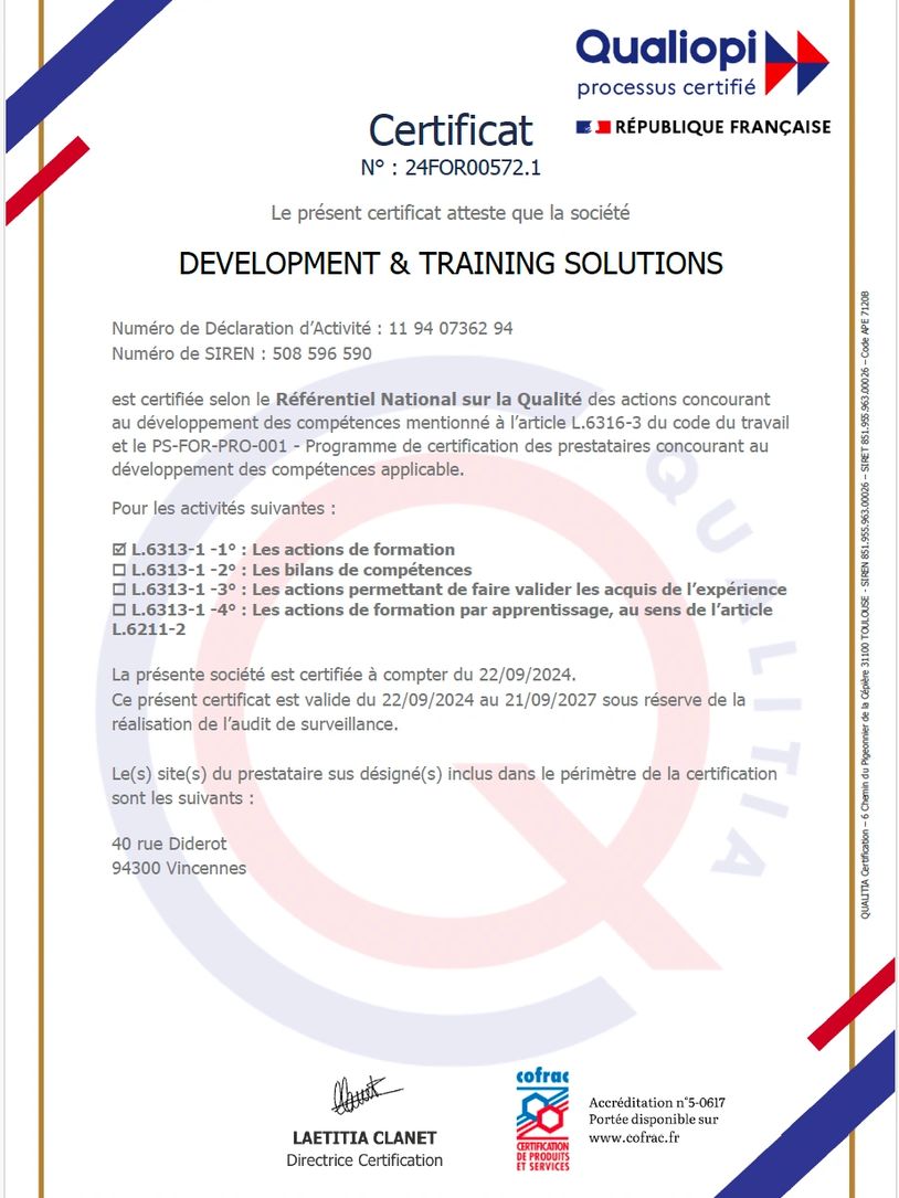 Certifié Qualiopi pour des actions de formation depuis 2020